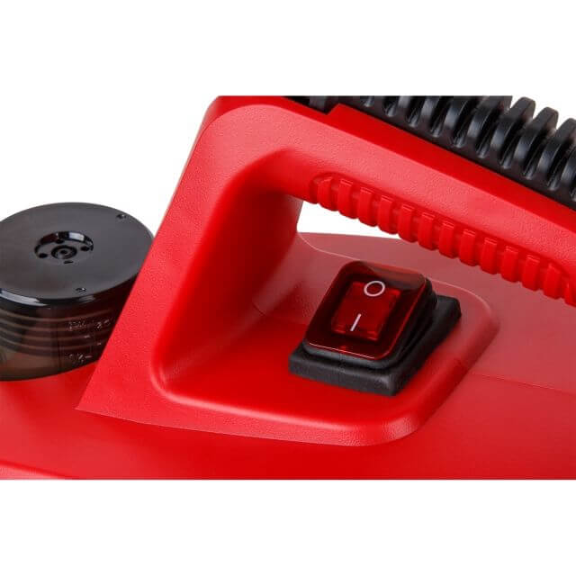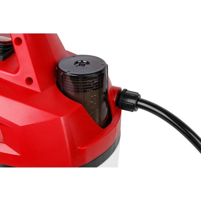 Давление создается одним нажатием кнопки. Благодаря широкой горловине основной бак легко заполнить жидкостью.
