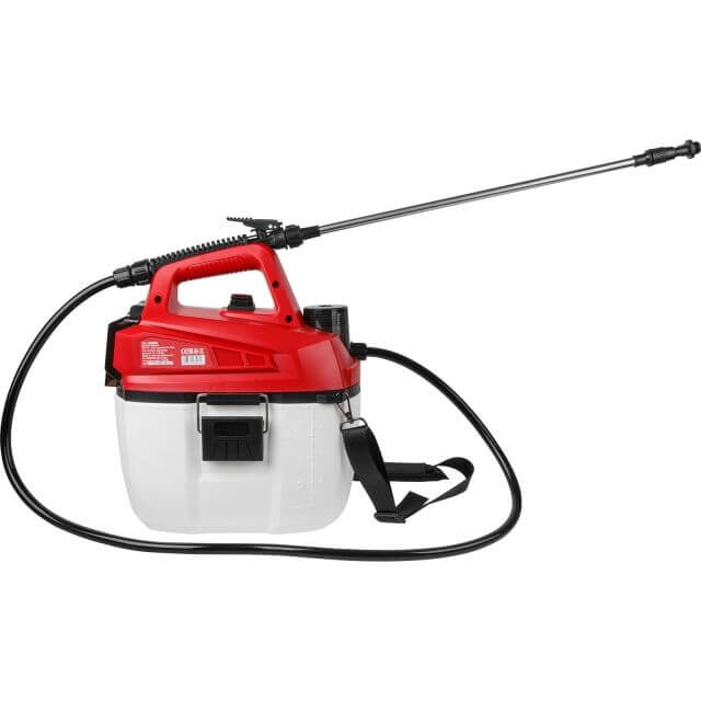 Аккумуляторный садовый опрыскиватель оборудован 5-литровым баком для жидкости, функционирует от литий-ионной батареи, имеет меньший вес, удобен и прост в использовании.