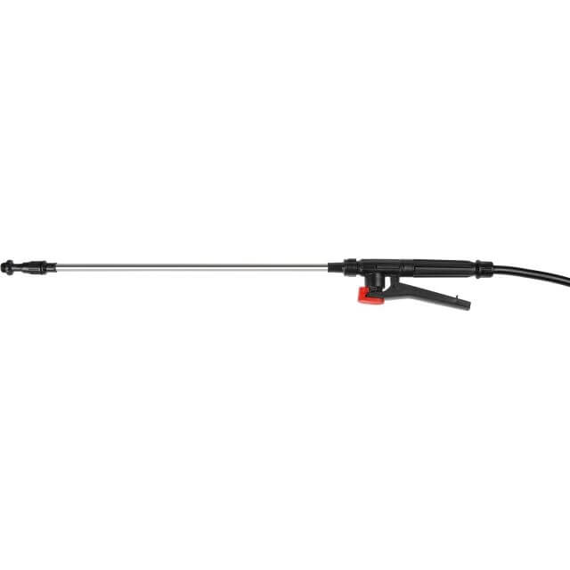 Шланг длиной 1,1 м позволяет распылять жидкости на расстояние до 5 м. Максимальная производительность: 3,1 л/мин.