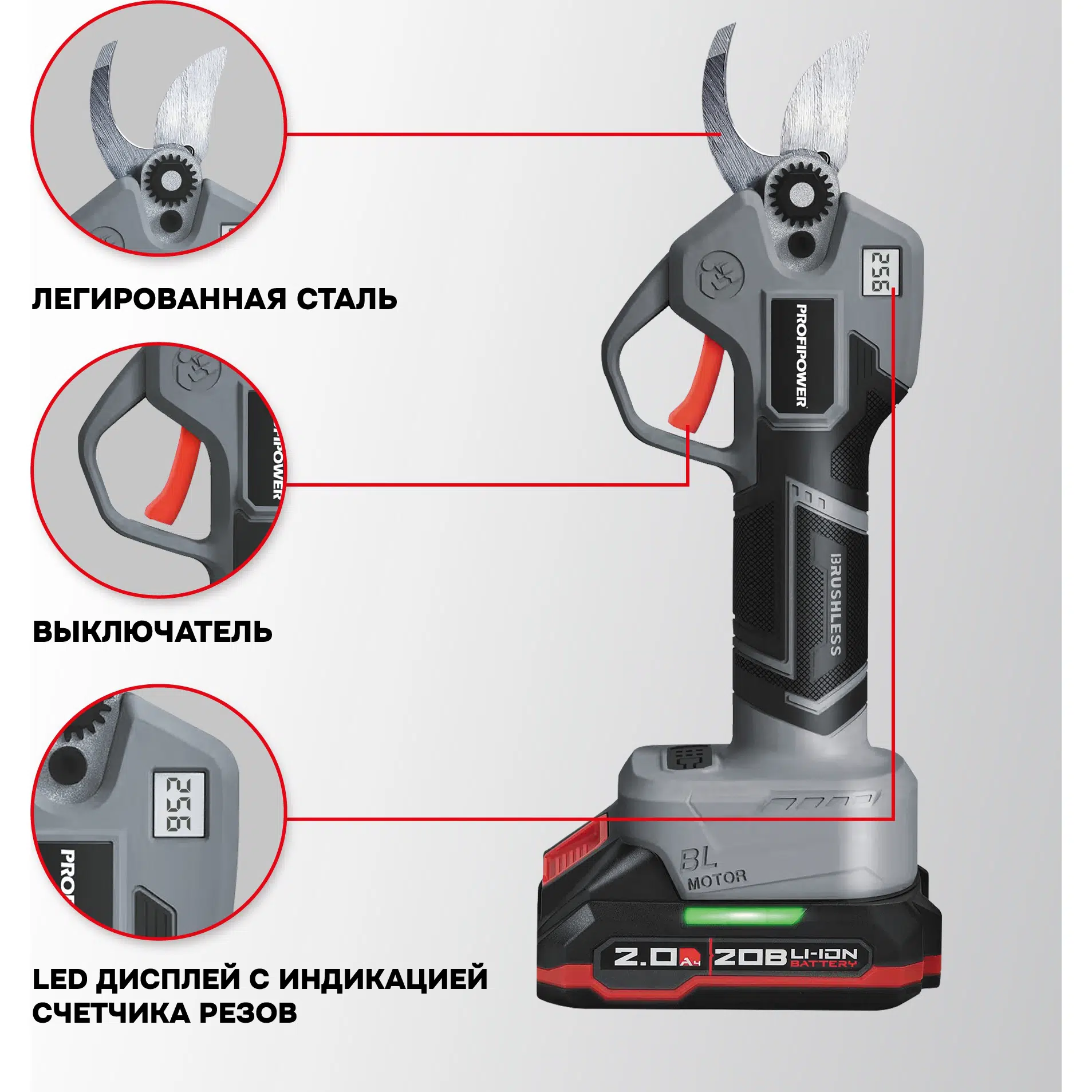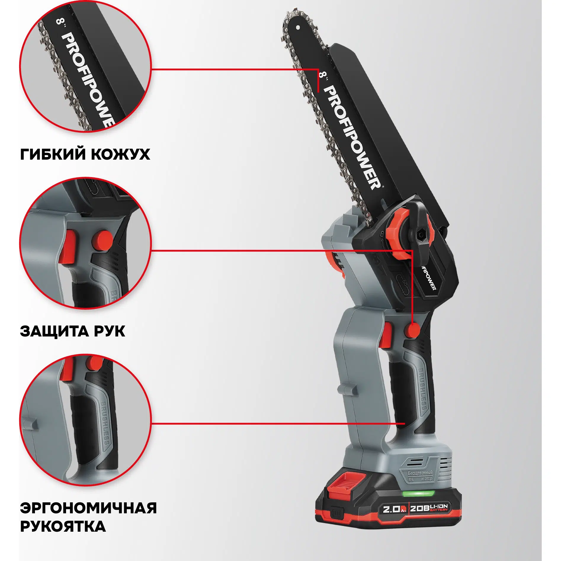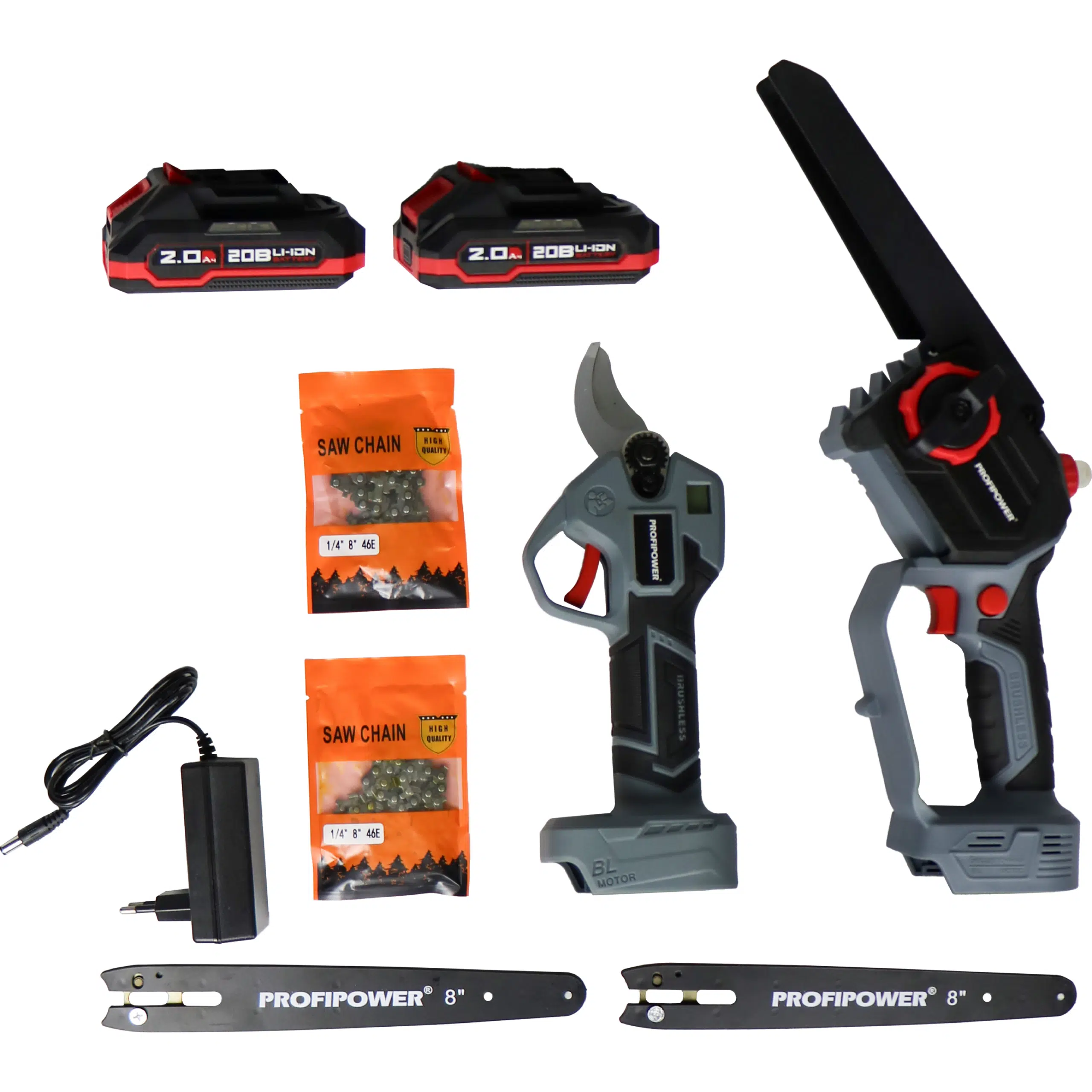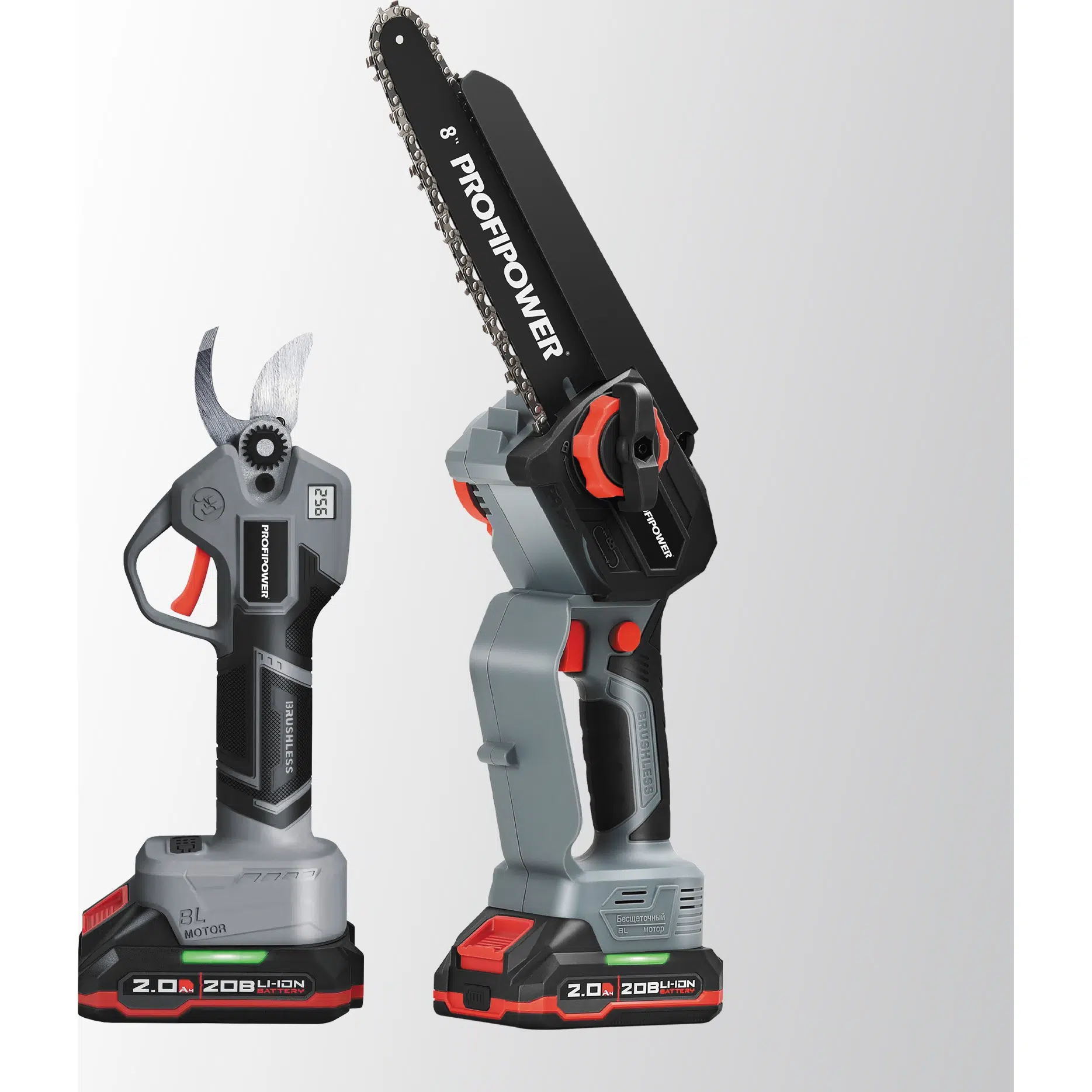 Набор аккумуляторных инструментов PROFIPOWER ProfiSet-2G20 (E0217) — универсальный 2в1 комплект для садовых и бытовых задач. Включает два литий-ионных аккумулятора 20В, 2.0Ач с зарядным устройством и коробку для удобного хранения и транспортировки. В комплект входят мощная мини-пила с масляной подачей, секатор и два комплекта цепей и шин по 8 дюймов — идеально подходят для обрезки деревьев, кустарников и других работ на участке. Бесщеточный двигатель обеспечивает долговечность и высокую производительность. Надежный, компактный и легкий в использовании набор — ваш незаменимый помощник в саду и дома!