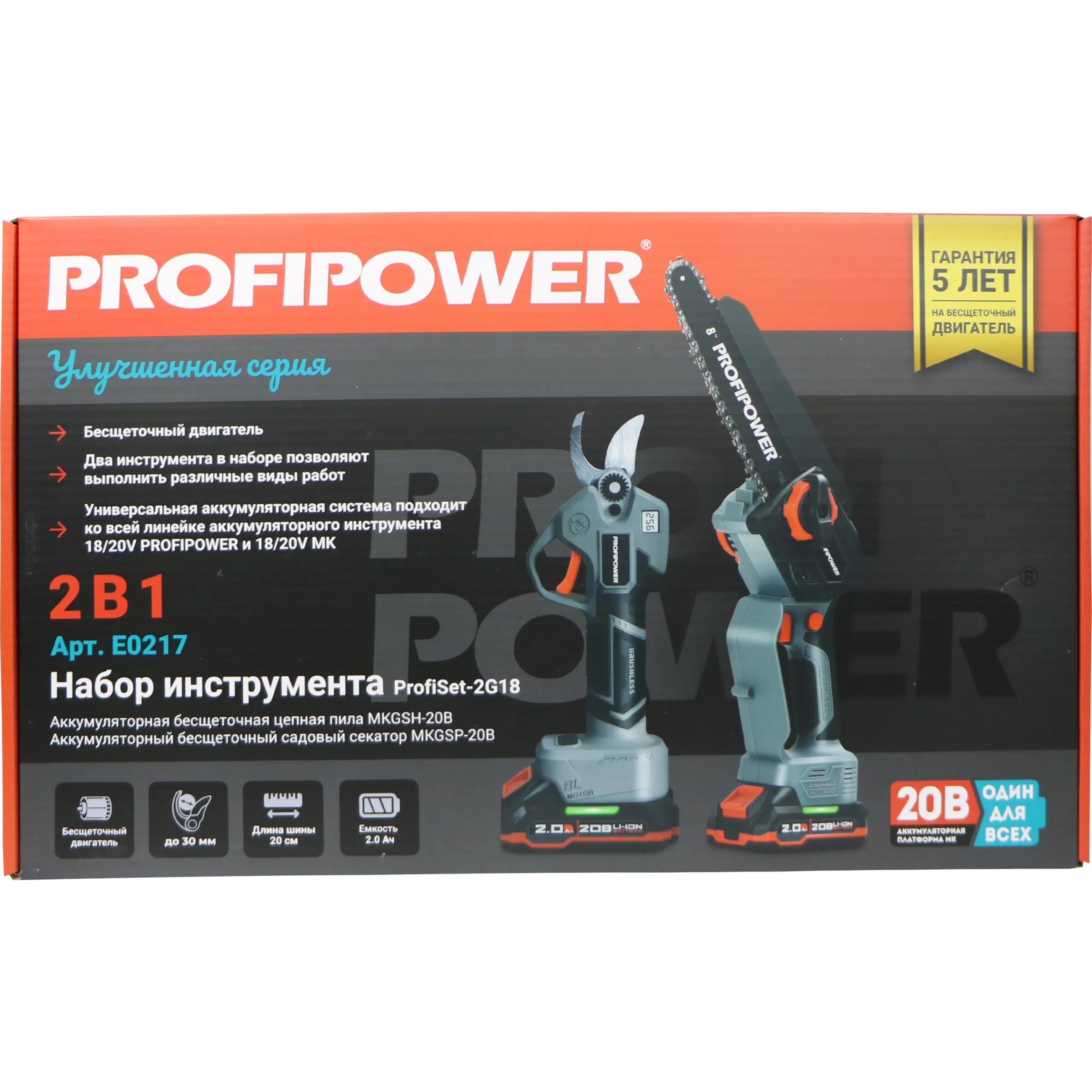 Аккумуляторный бесщеточный E0217 НАБОР 2в1 PROFIPOWER ProfiSet-2G20