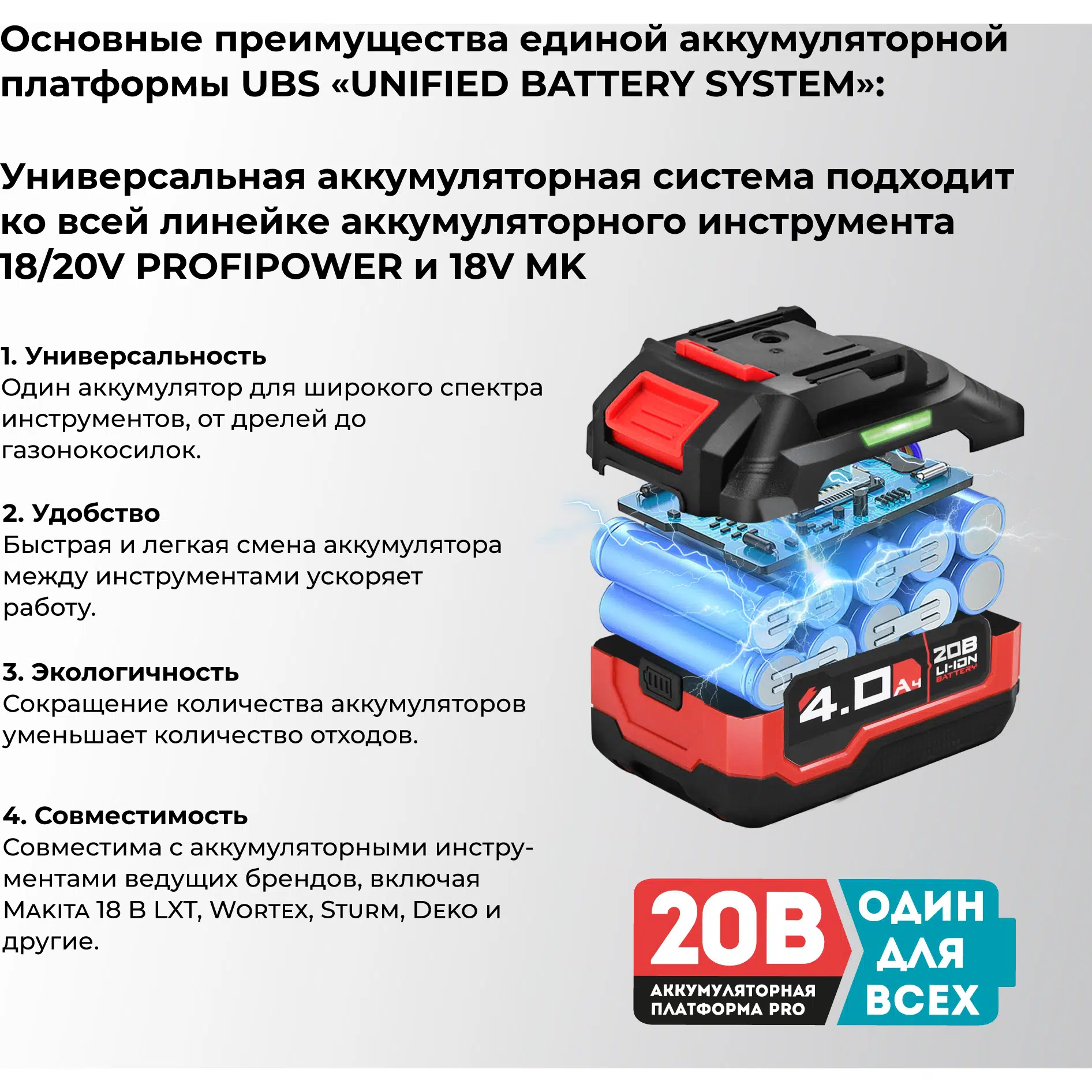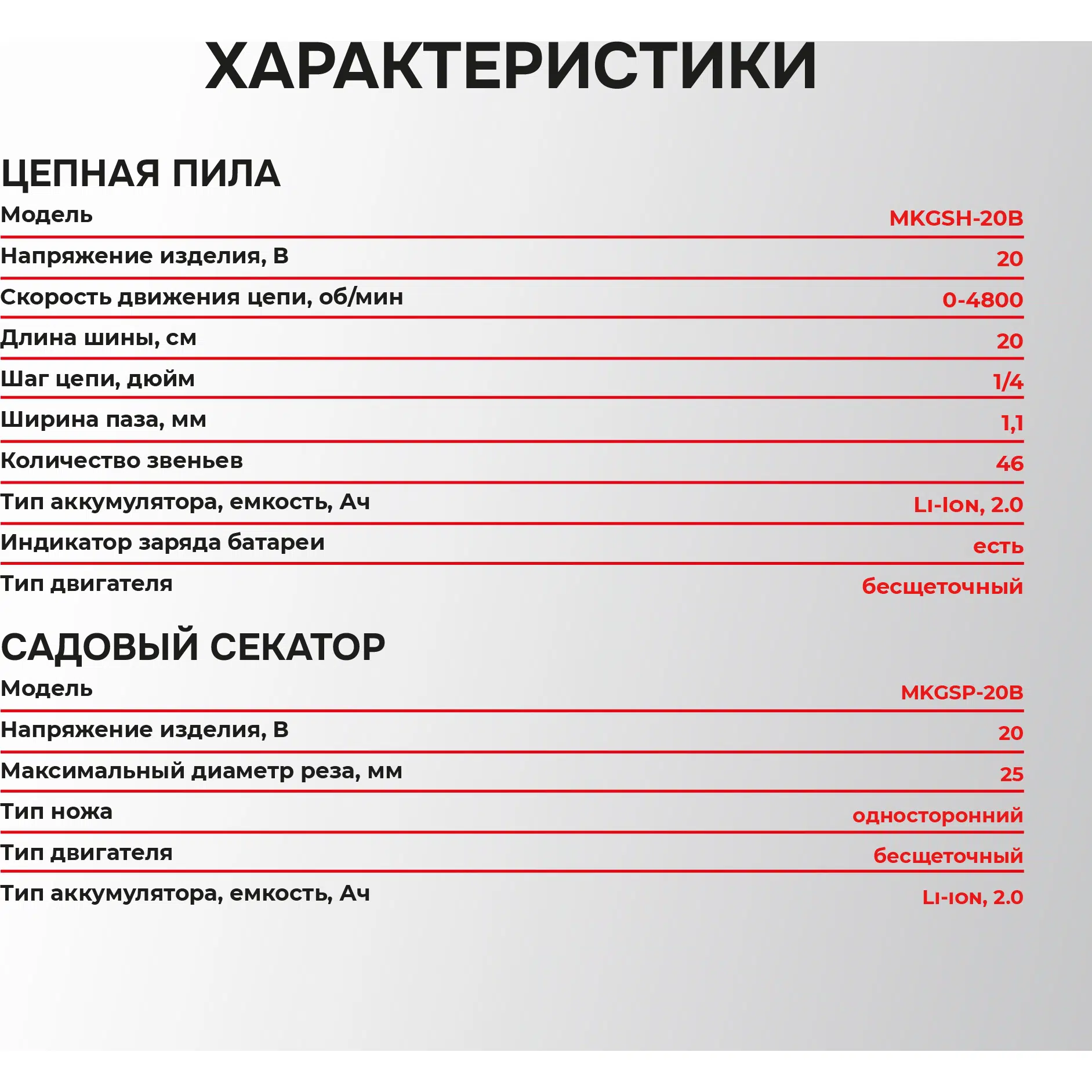 Мощность аккумулятора: 20 В