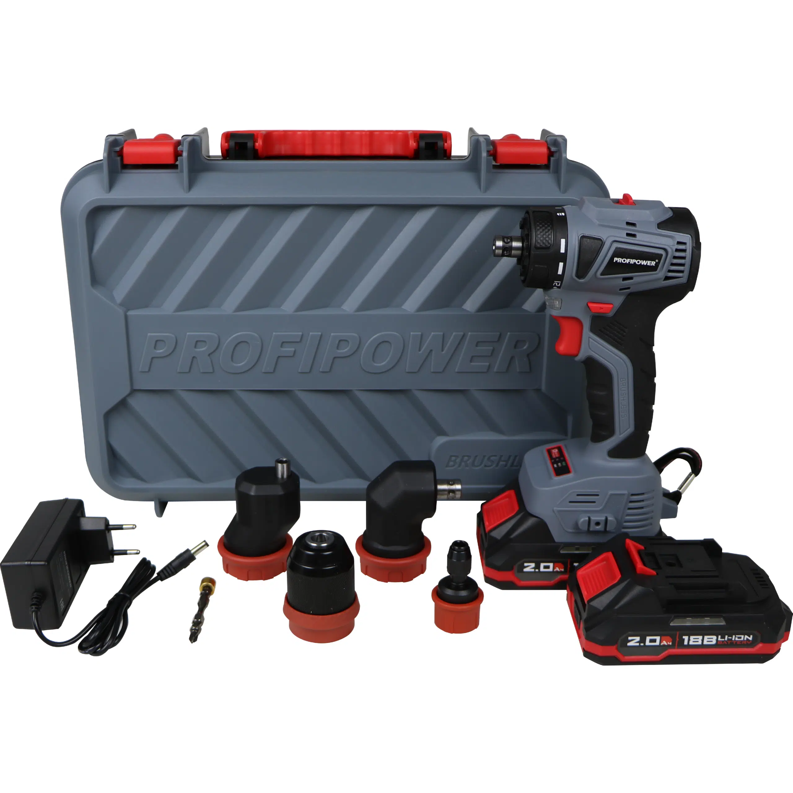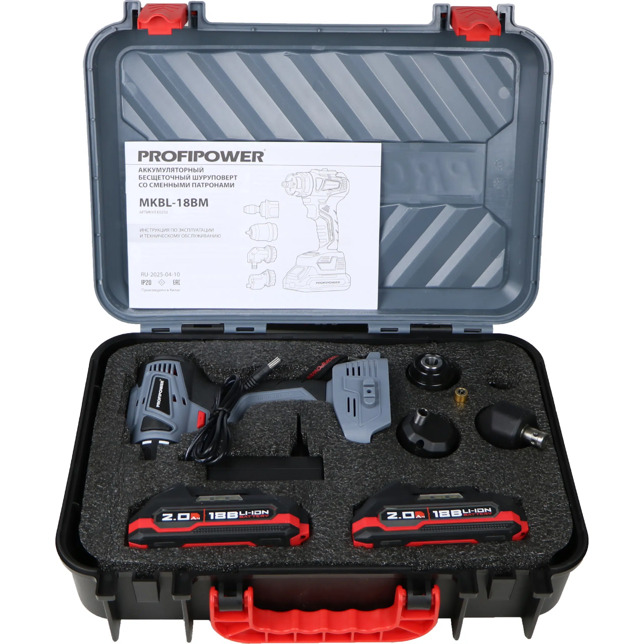 Аккумуляторный бесщеточный шуруповерт со сменными насадками PROFIPOWER MKBL-18BM E0250