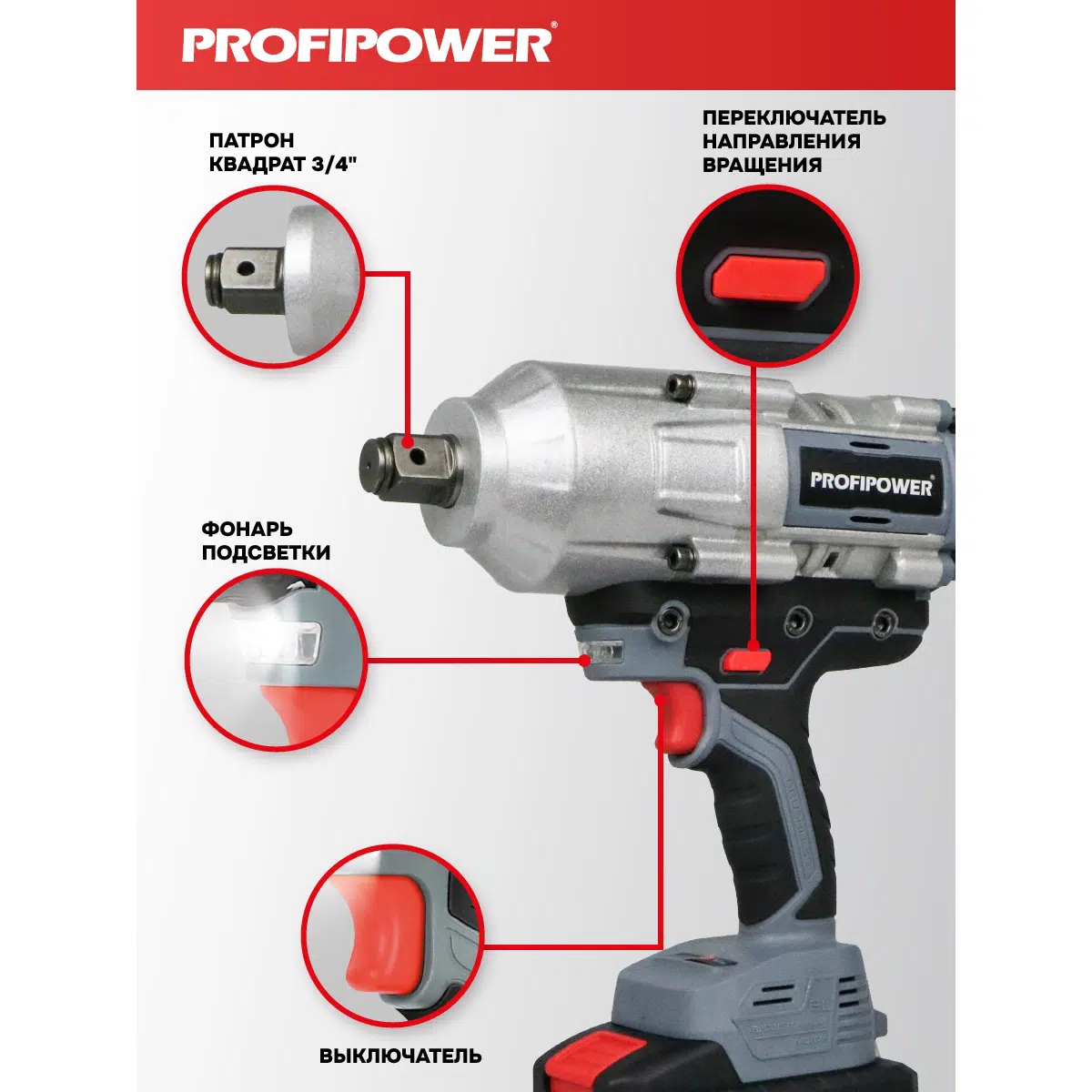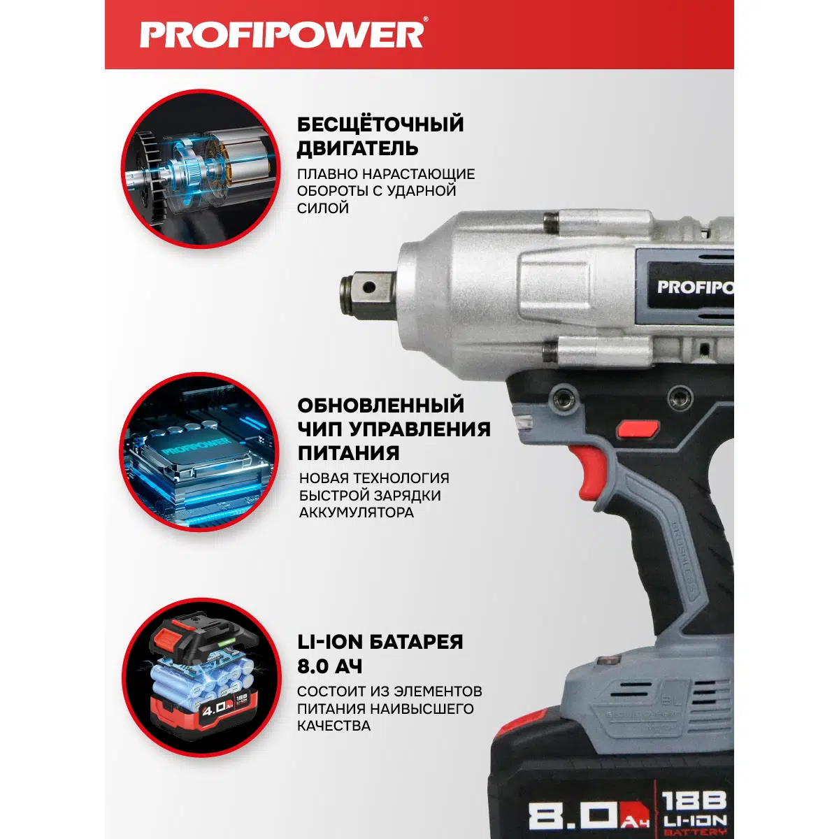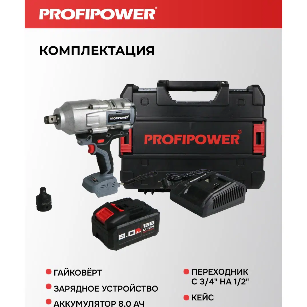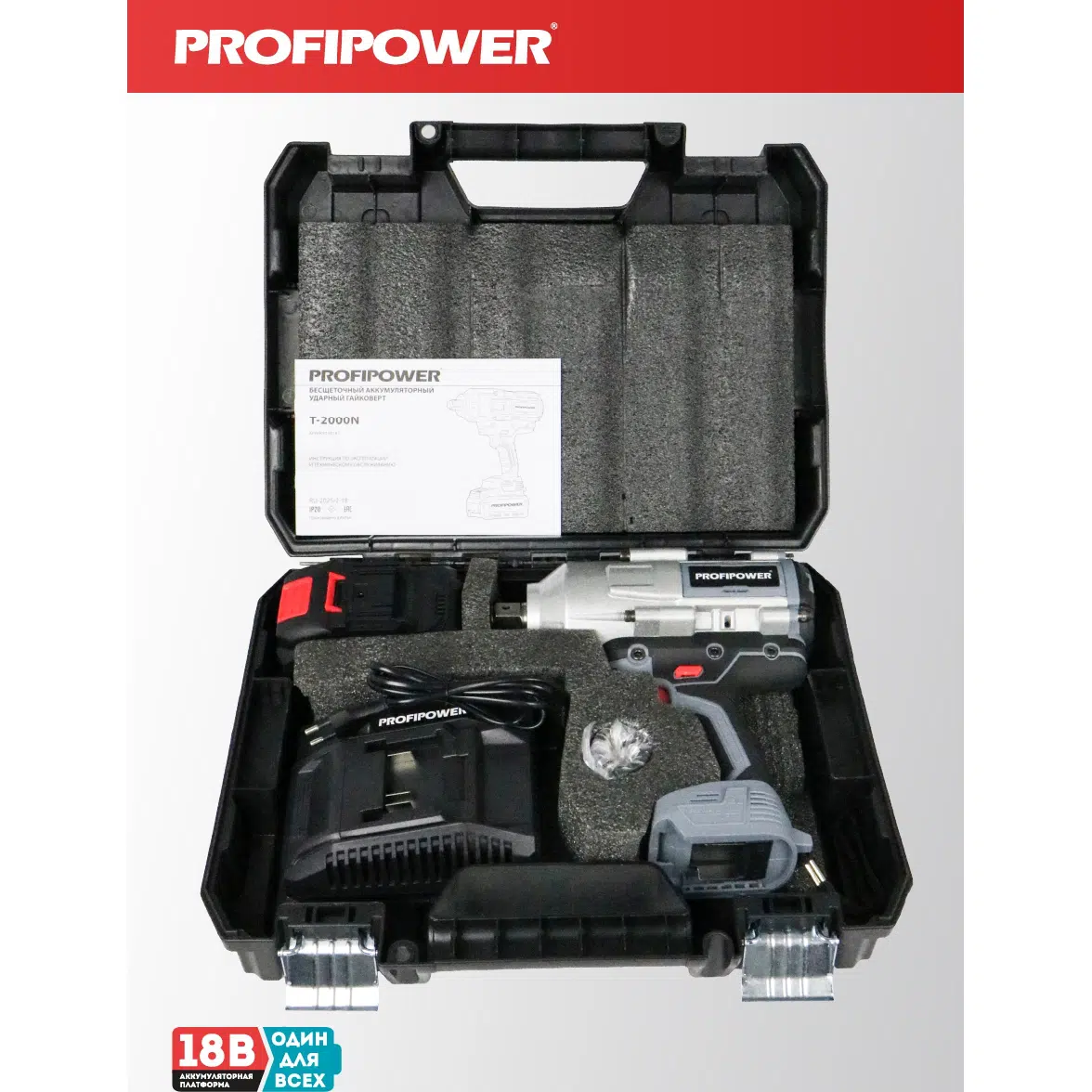 Аккумуляторный гайковерт бесщеточный ударный E0187 PROFIPOWER T-2000N
