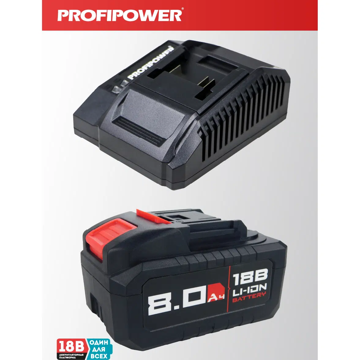 - Напряжение заряжаемых аккумуляторов, В: 18