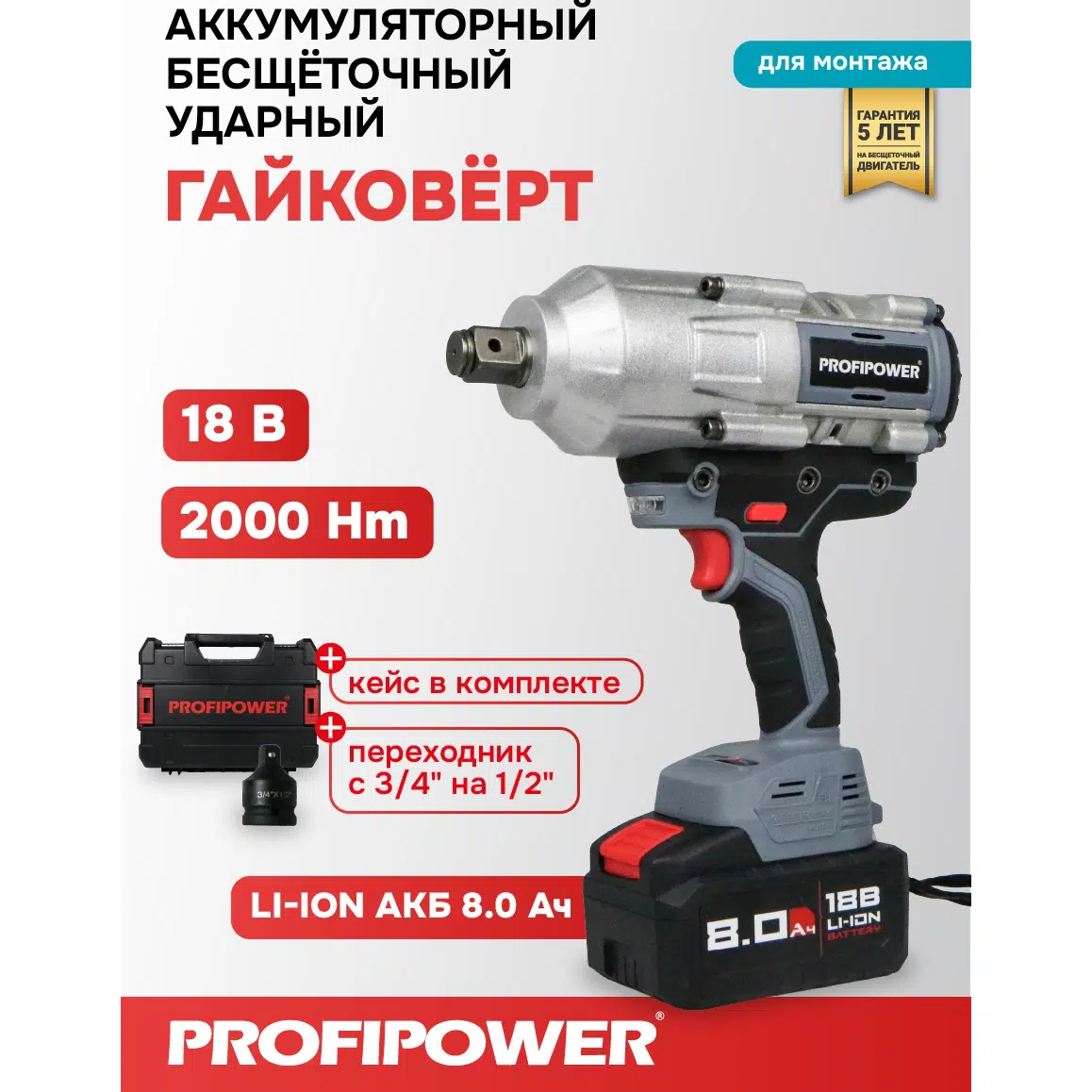 Размер патрона 3/4″ делает этот гайковерт универсальным и подходящим для использования в различных отраслях, включая автомобильную, строительную и промышленную. И наконец, его надежность подтверждается пятилетним сроком службы, что делает его незаменимым инструментом для профессиональных применений.