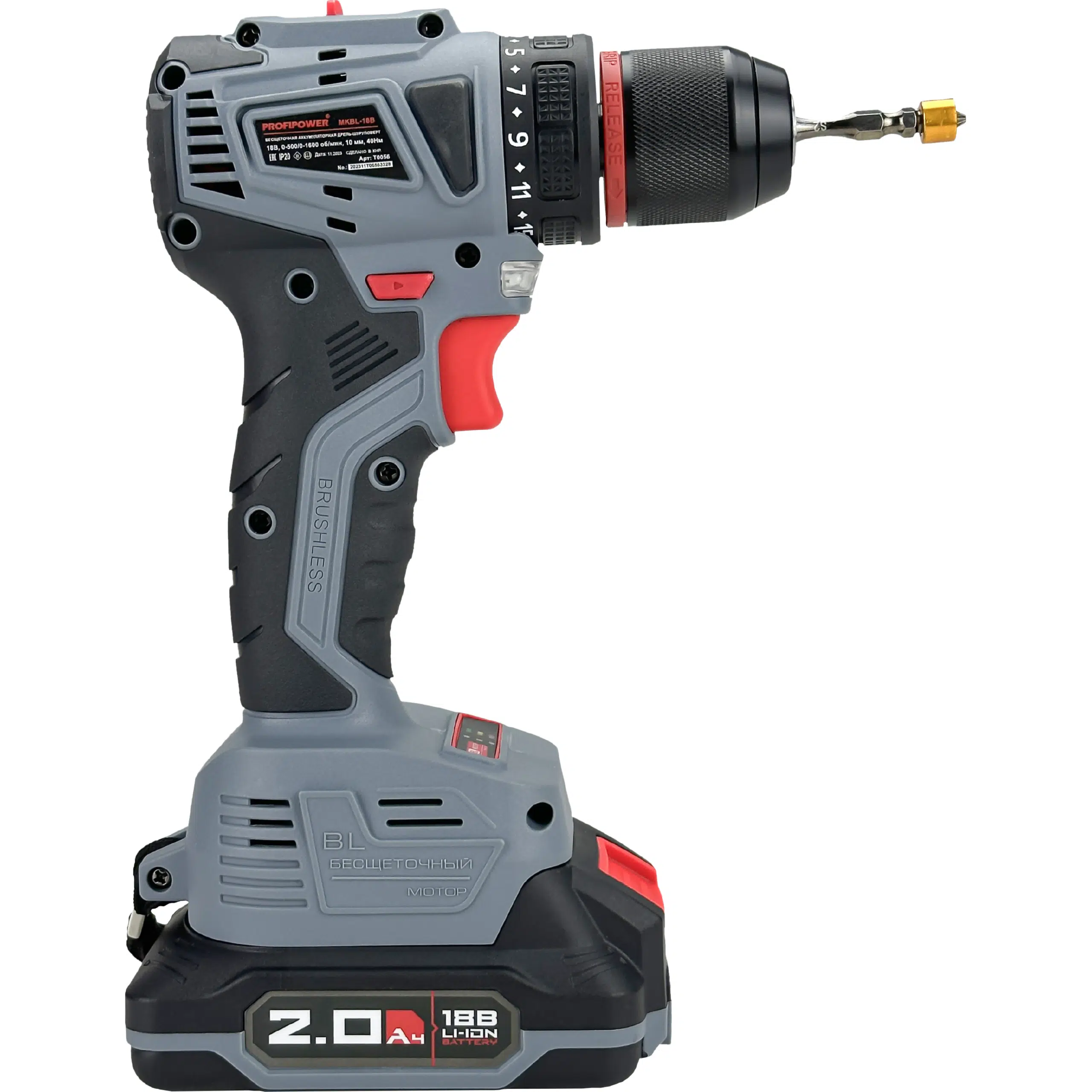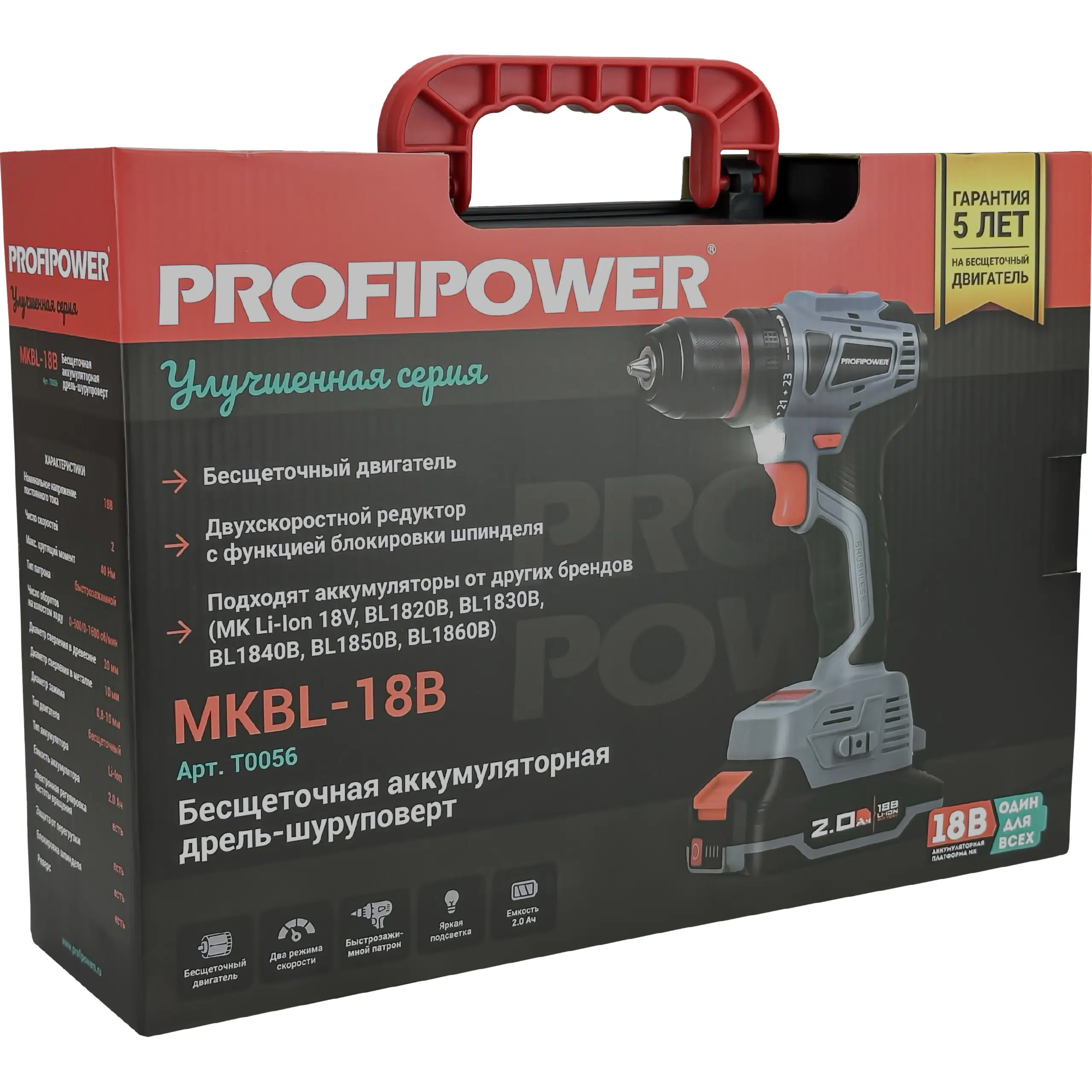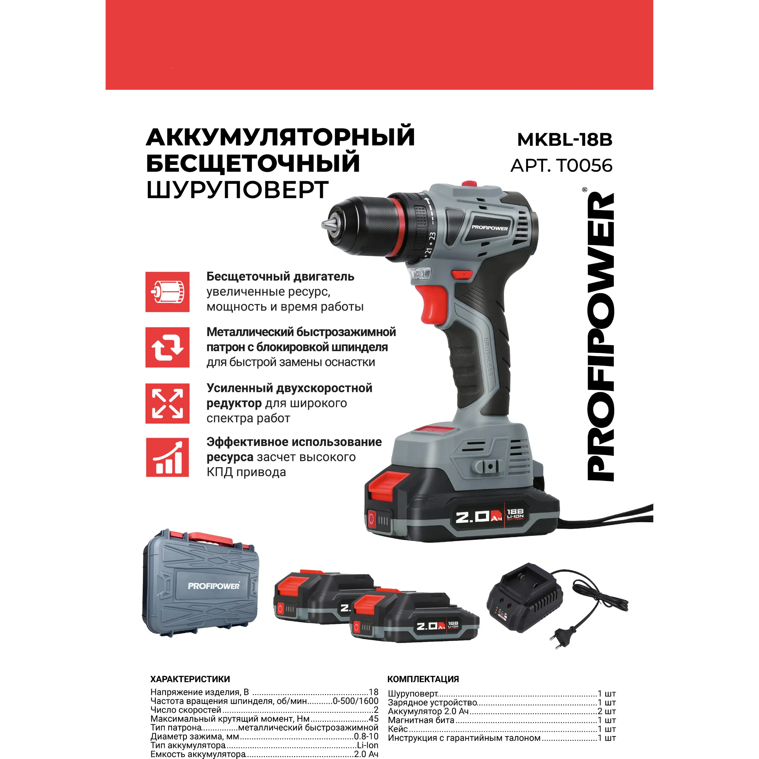 Аккумуляторный шуруповерт бесщеточный T0056 PROFIPOWER MKBL-18B