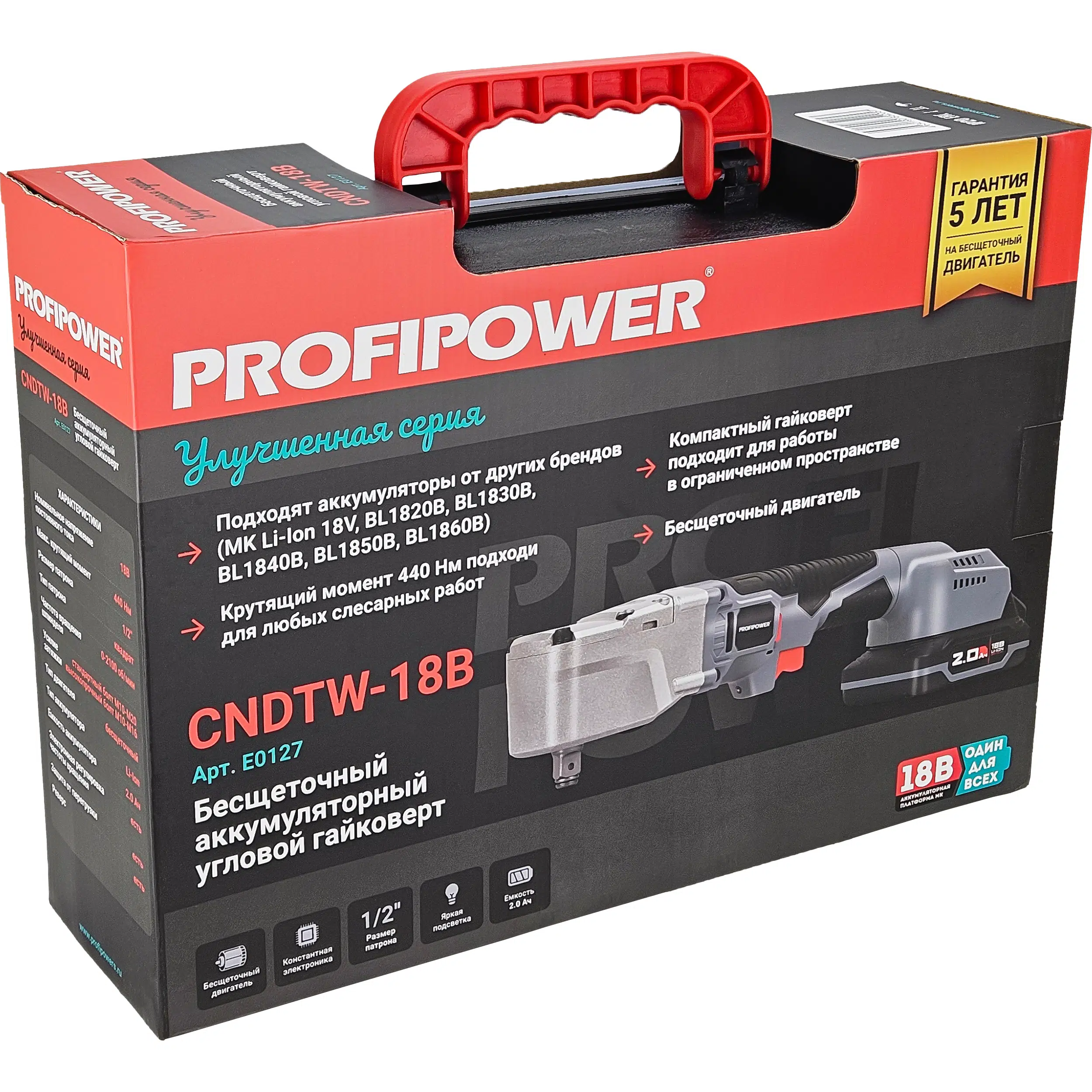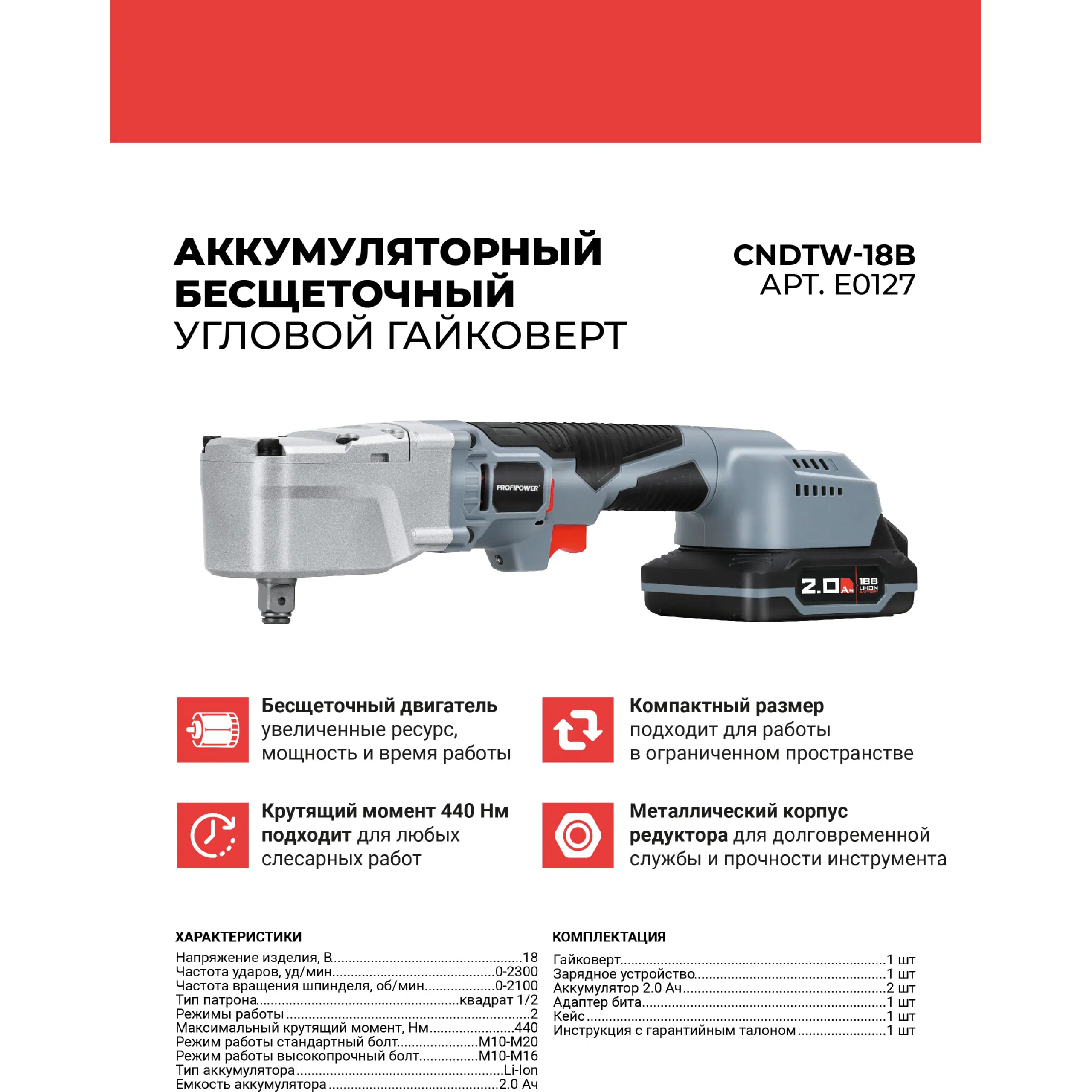 Аккумуляторный угловой гайковерт бесщеточный E0127 ProfiPower CNDTW-18B