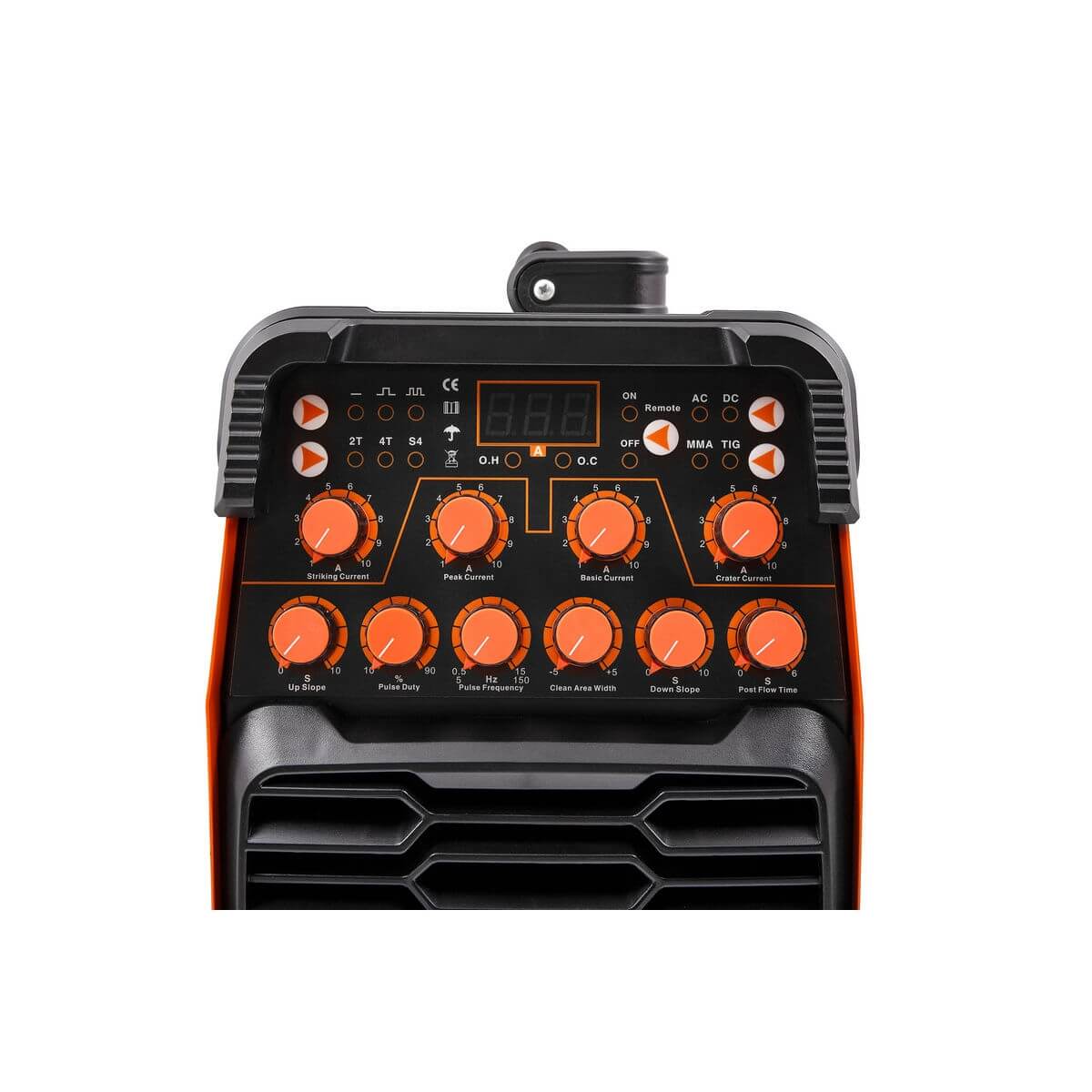 Цифровой дисплей обеспечивает удобный контроль и настройку параметров сварки, что повышает точность и удобство работы.