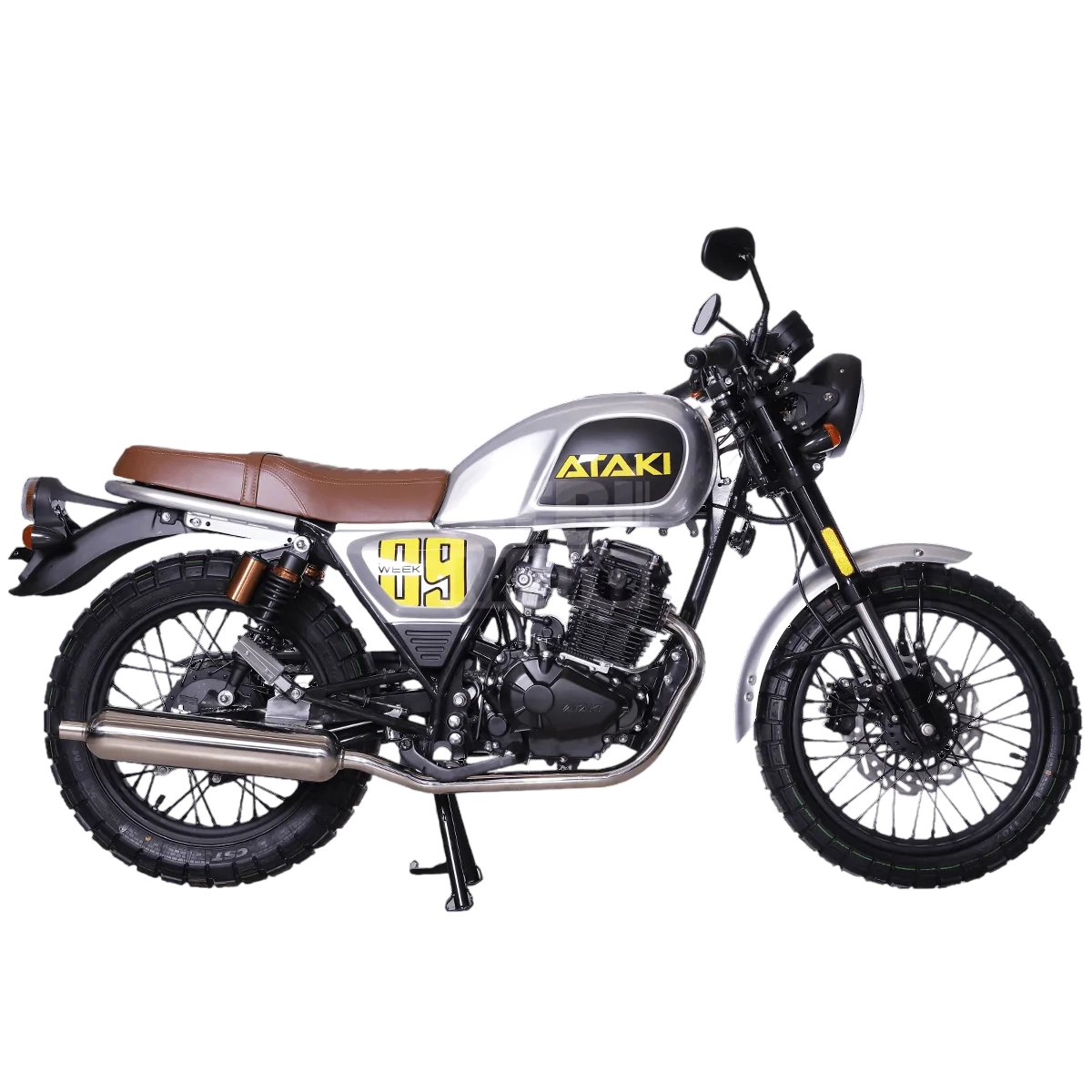 Мотоцикл ATAKI Week9 (4T PR300) с ЭПТС — это стильный дорожный байк в ретро-стилистике, идеально подходящий для любителей классики и свободы на дороге. Этот мотоцикл сочетает аутентичный дизайн, простоту обслуживания и удобство управления, создавая уникальное ощущение мотокультуры.