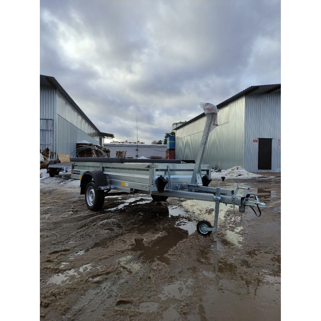Самосвальный механизм значительно облегчает погрузочно-разгрузочные работы — платформа плавно наклоняется для безопасного размещения техники. Удлинитель дышла позволяет подбирать длину прицепа под габариты транспортируемой лодки, обеспечивая оптимальное распределение нагрузки и правильную центровку.