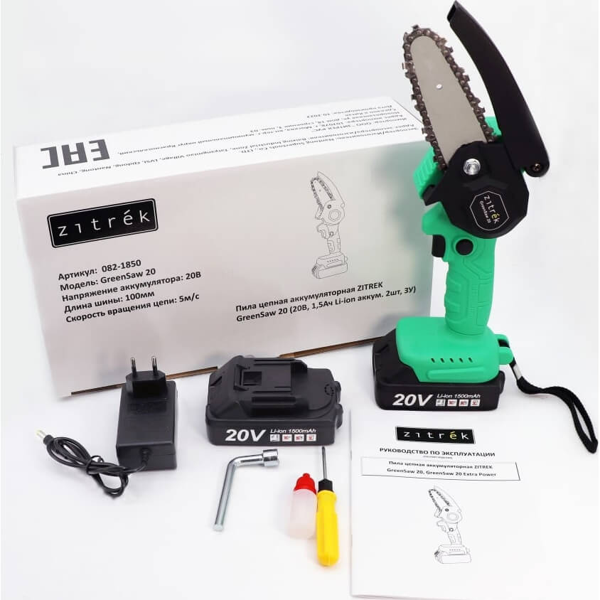 Цепная аккумуляторная пила Zitrek GreenSaw 20 В, 2 АКБ 1.5 А*ч, ЗУ 082-1850