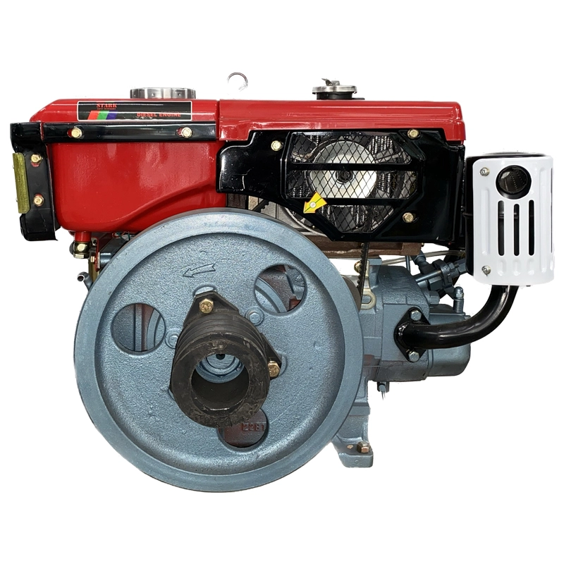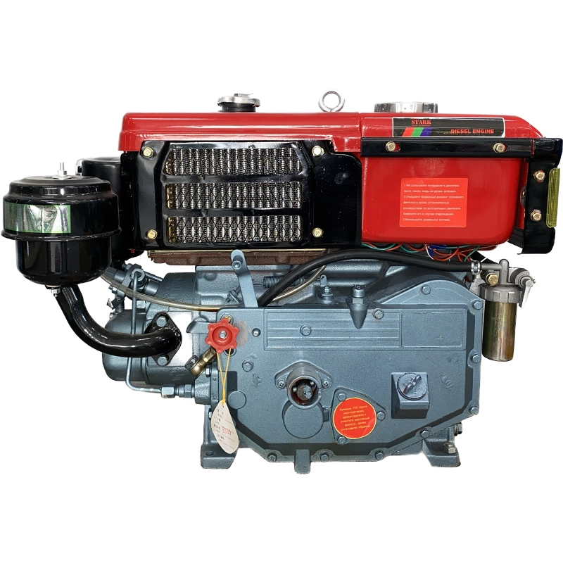 Одноцилиндровый четырехтактный дизельный двигатель с водяным охлаждением и системой ручного запуска Stark R180NL — мощный и тяговитый. Вал отбора мощности — ременной шкив, который устанавливается на маховике. Двигатель оснащен радиатором и имеет водяное охлаждение, таким образом не перегревается при длительных нагрузках и постоянной работе. В передней части установлена мощная светодиодная фара для работы в темное время суток. Stark R180NL устанавливается на мотоблоки, минитрактора, буровые установки, электростанции, помпы, погрузчики и другую технику.