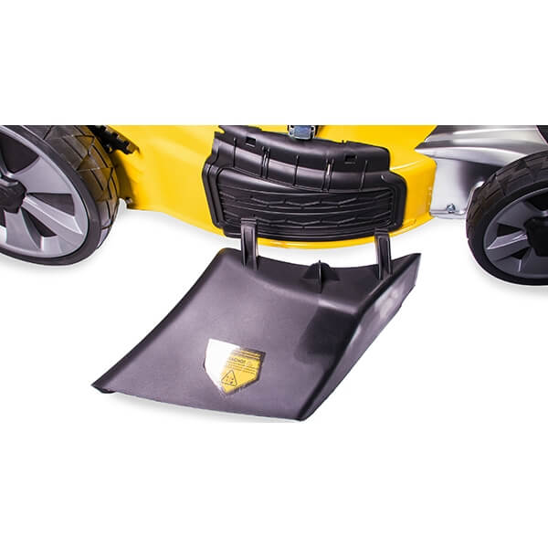 Наличие встроенного штуцера для подключения воды позволяет легко и быстро очистить корпус (деку) газонокосилки от остатков травы. Для этого достаточно подключить шланг с водой к штуцеру, завести двигатель, подать воду и дать поработать газонокосилке несколько минут.