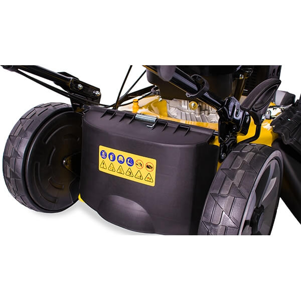 Модель имеет 8 позиций для регулировки высоты скоса. Широкий профиль колес не оставляет следов на скошенном участке газона. Складная рукоятка для удобства при хранении и транспортировке. Удобная система запуска ручным стартером. Прочная стальная дека.