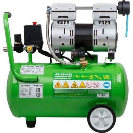 Компрессор ECO AE-25-OF1 безмасляный (140 л/мин, 8 атм, коаксиальный, безмасляный, ресив. 24 л, 220 В, 0,8 кВт) (AE-25-OF1)