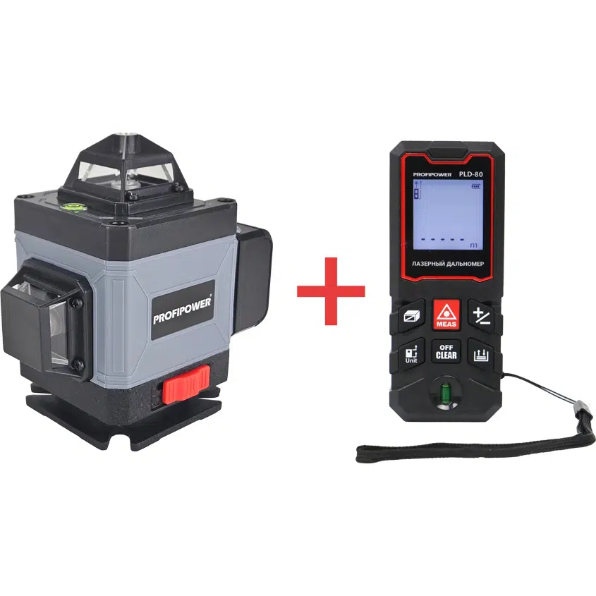 Лазерный нивелир E0070 ProfiPower NL-7016 + Дальномер лазерный E0269 PROFIPOWER 80 метров PLD-80