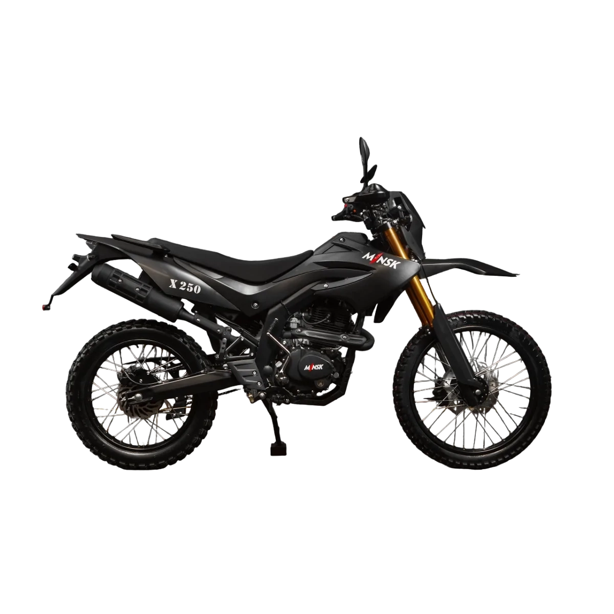 Мотоцикл эндуро МИНСК (M1NSK, MINSK) X250 — это надежный и стильный байк начального уровня, созданный для тех, кто любит активный отдых и приключения на бездорожье. Эта усовершенствованная модель предшественника X200 сочетает в себе мощность, комфорт и современные технологии, позволяя уверенно штурмовать любые трассы и путешествовать по различным условиям.