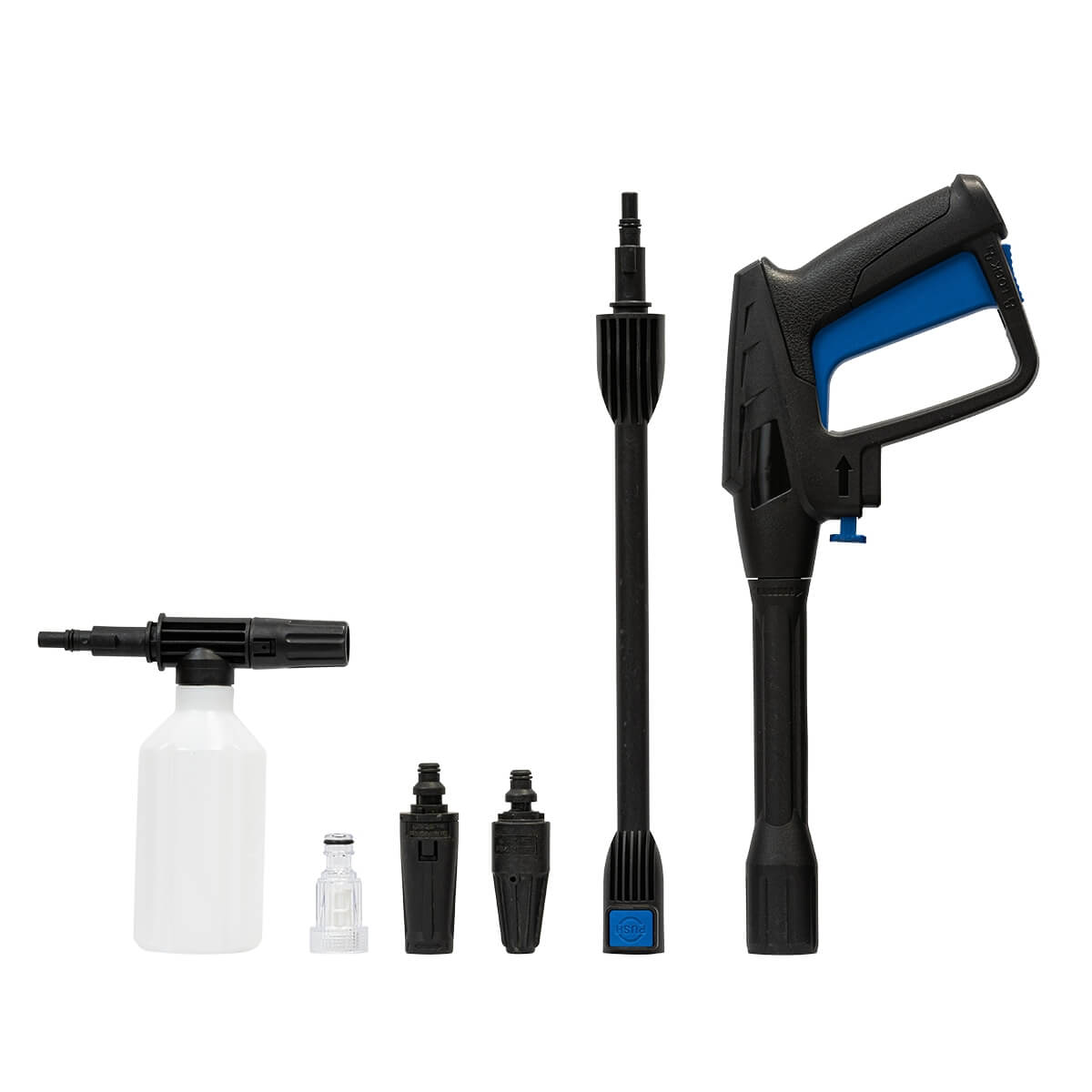 Данное оборудование предназначено для очистки стен зданий, фасадов, террас, пешеходных дорожек, садовой техники, машин, транспортных средств, инструментов и т. д. с помощью насадок для подачи воды под давлением.