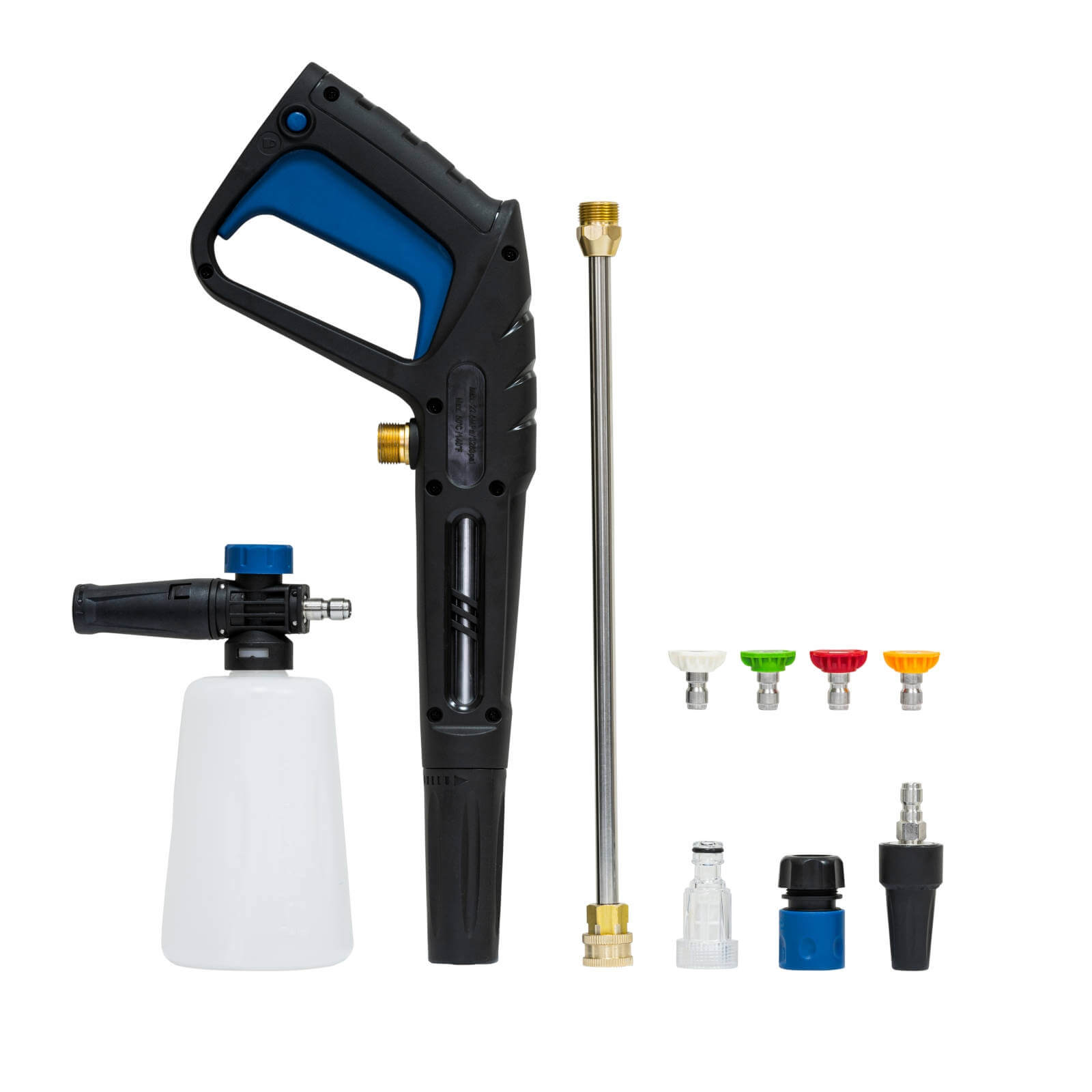 Удобная быстросъемная система позволяет моментально менять насадки, экономя ваше время и упрощая работу. В комплекте поставляются 4 насадки для различных задач: от деликатной чистки до мощной струи для удаления стойких загрязнений. Такой функционал обеспечивает универсальность и высокую эффективность мойки.