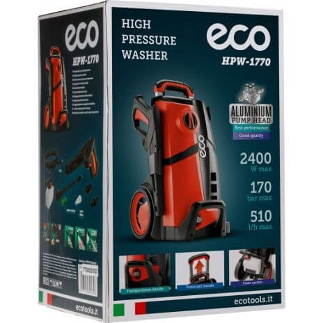 Очиститель высокого давления ECO HPW-1770 (2.40 кВт, 170 бар, 510 л/ч, самовсасывание, телескоп. ручка, активный пеногенератор) (HPW177000001)