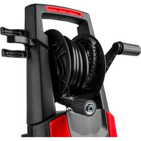 Отличительной особенностью данной модели является наличие катушки для удобного хранения шланга с возможностью его использования без полной раскрутки.