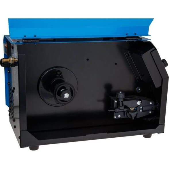 Аппарат оснащен встроенной горелкой MIG 2 метра и возможностью смены полярности для сварки проволокой без газа (FLUX).