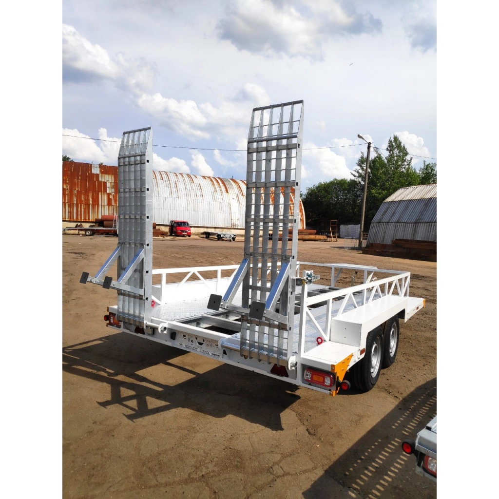 - Полная базовая комплектация. Прицеп готов к работе сразу: в комплекте идут погрузочные трапы длиной 2,5 м, откидные въездные подпорки для удобства заезда и жесткости, а также яркая светодиодная оптика.