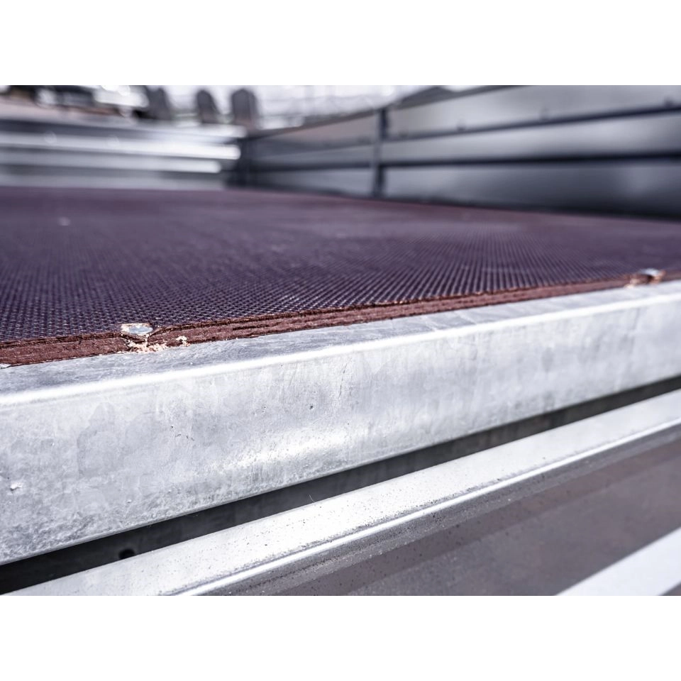 - Прочная конструкция: цельносварная рама и усиленные бортовые панели гарантируют надежную работу даже при интенсивных нагрузках.
