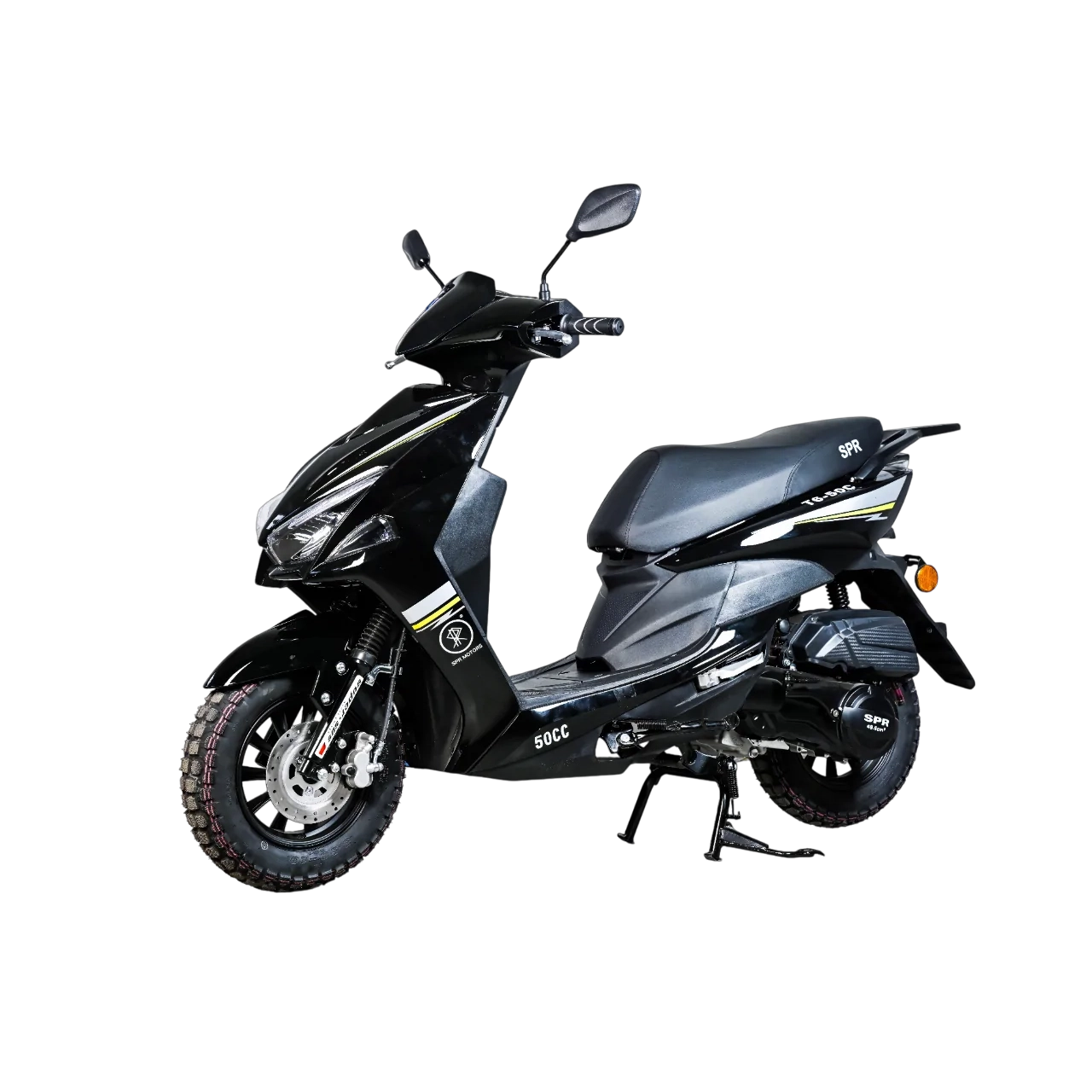 SPRMOTORS SPORT FS+ T6-50C — это скутер, который сочетает в себе агрессивный спортивный дизайн и практичность классической 50-кубовой модели.