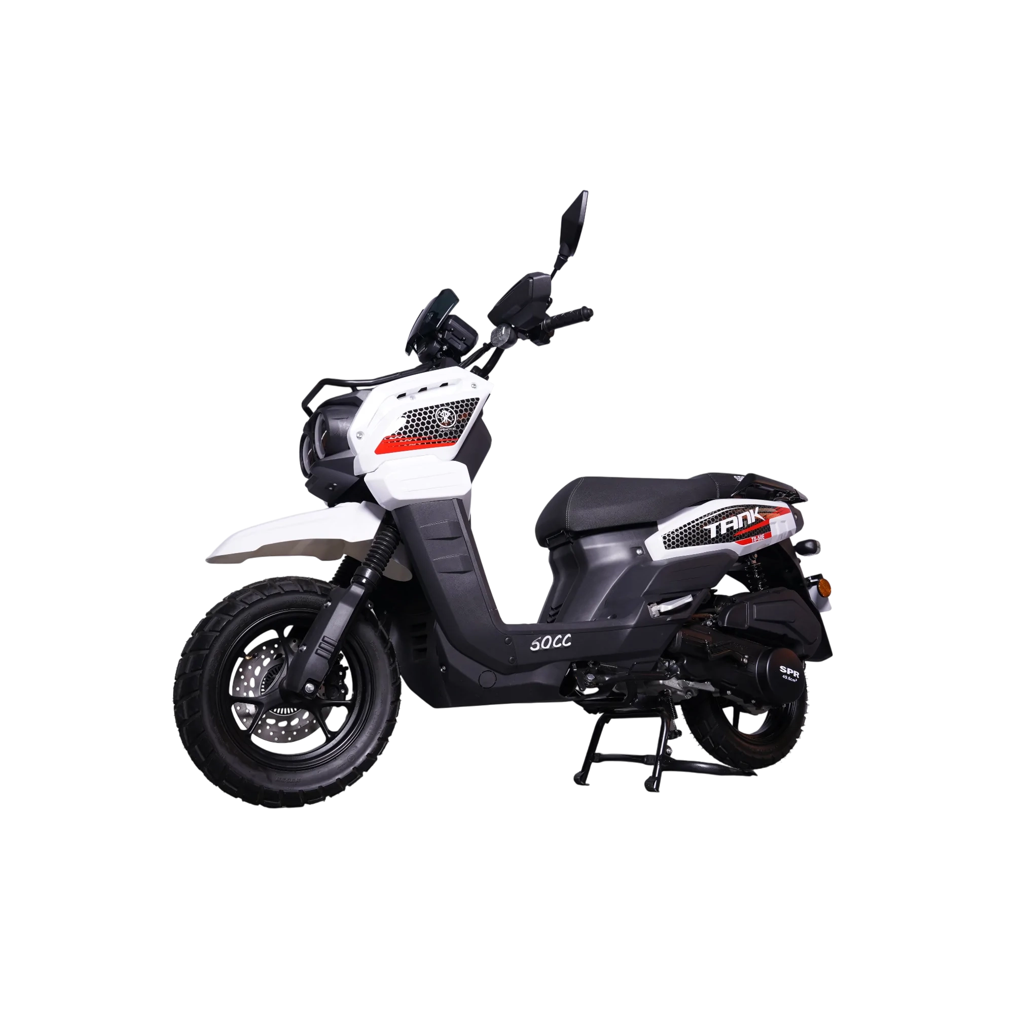 SPRMOTORS Tank T8-50E 150cc — это гибрид городской маневренности и внедорожной прочности по доступной цене. Его агрессивный дизайн в стиле «кросс» скрывает надежную «начинку» для ежедневных поездок.