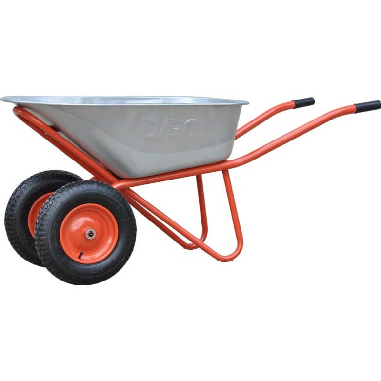 Тачка строительная DARC MASTER 2×140 (0,9 мм, до 140 л, до 370 кг, 2×4.00-8, пневмо, ось 20*85). Предназначена для перевозки различных грузов, в том числе строительных материалов.