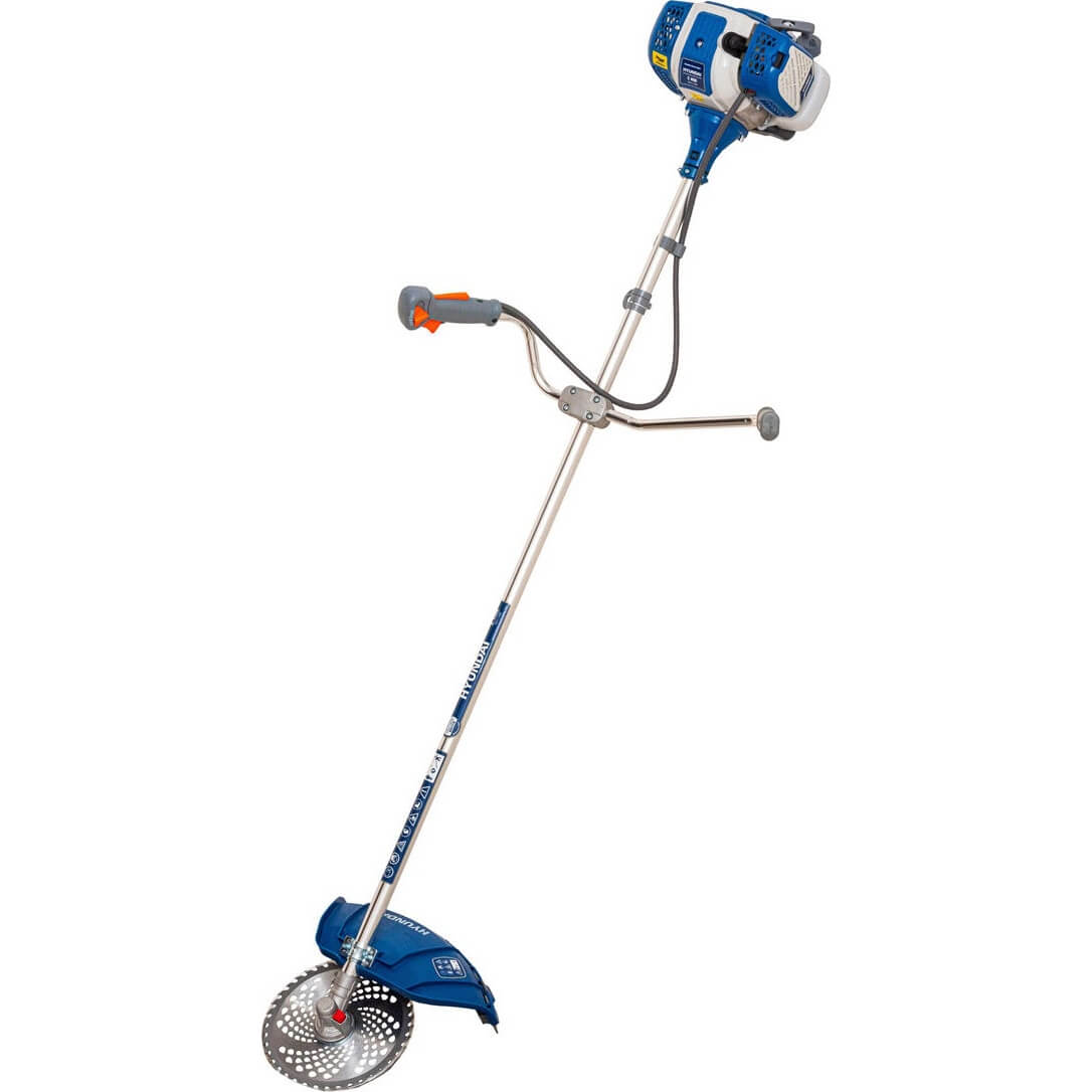 Надежный двухтактный бензиновый триммер HYUNDAI Z 456 для кошения травы на дачном участке. Имеет полосу кошения 430 мм, диск – 255 мм. Велосипедная ручка и мощность мотора 1.5 кВт.