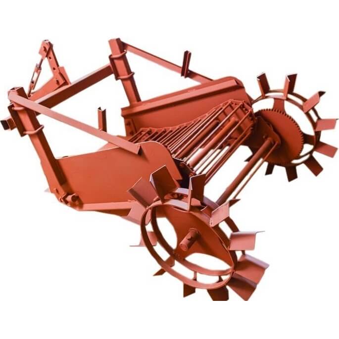 Оптимальная конструкция данного агрегата позволяет ей достигать высокой эффективности, извлекать на поверхность все, в том числе, и мелкие клубни. Такая картофелекопалка показывает значительно более высокие результаты, чем плуг или картофелевыкапыватель. При этом ее можно использовать для выкапывания любых корнеплодов, близких к картофелю по размерам – свеклы, лука, крупного чеснока.